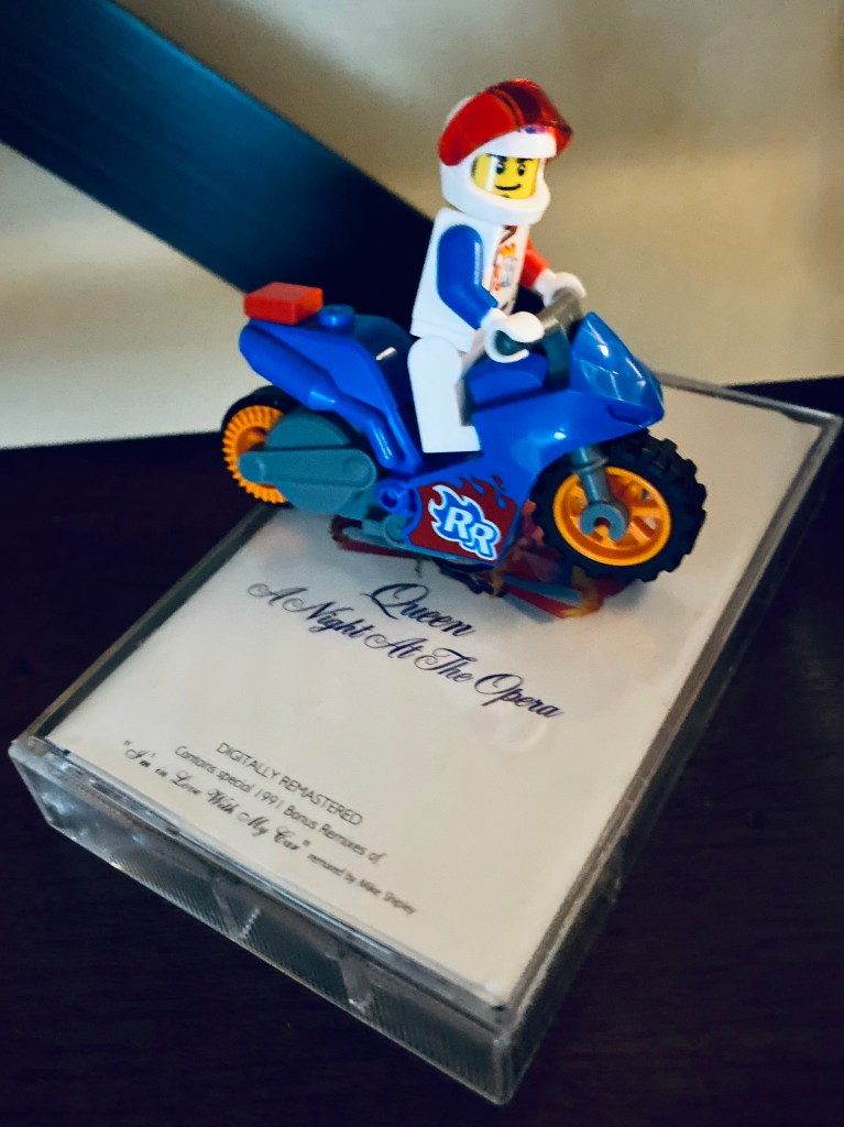 I listened, completely enraptured, about how Night at the Opera on cassette specifically meant something to someone completely stripped of everything, a tangible borrowed reminder of life outside. It was the opportunity for complete immersion in full orchestral rock’n’roll and the analyzation of big big vocal range, note by note. All this from a piddly little rectangular piece of plastic bound by thin strips of film stretched over two separate mouths of teeth. To have such a core memory poured out of his tap and into my glass was nothing short of unbelievable. Obviously, my interest was one hundred percent in the music but his voice and candor in talking about the album on this format and his experience with me made me feel voyeuristic. I didn’t deserve these intimate details. It takes, “What are you listening to?” flying through a whole ‘nother dimension, which is a question I feel passionately about and is a complete turn-on for me when asked that by someone who actually cares to know the answer.