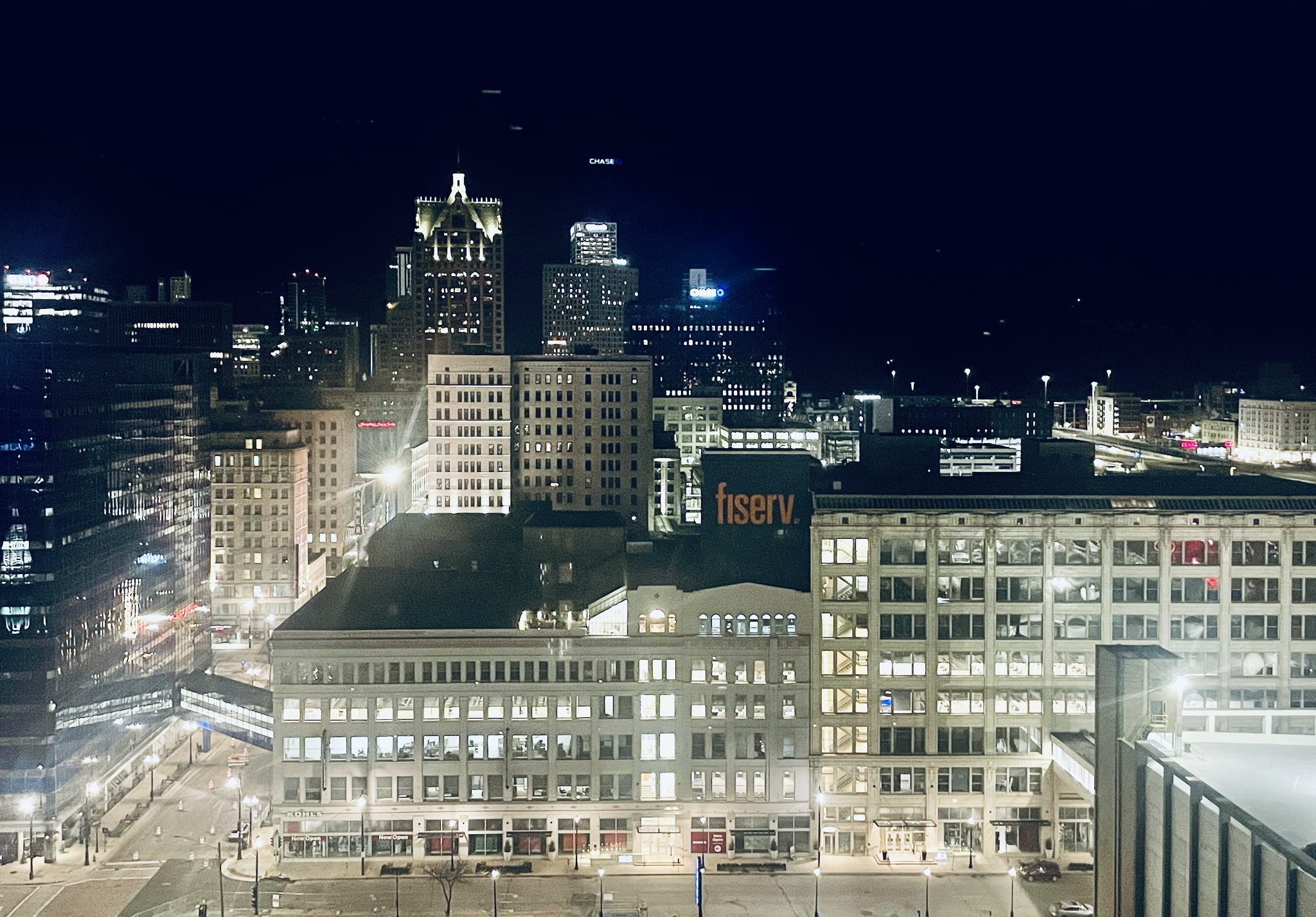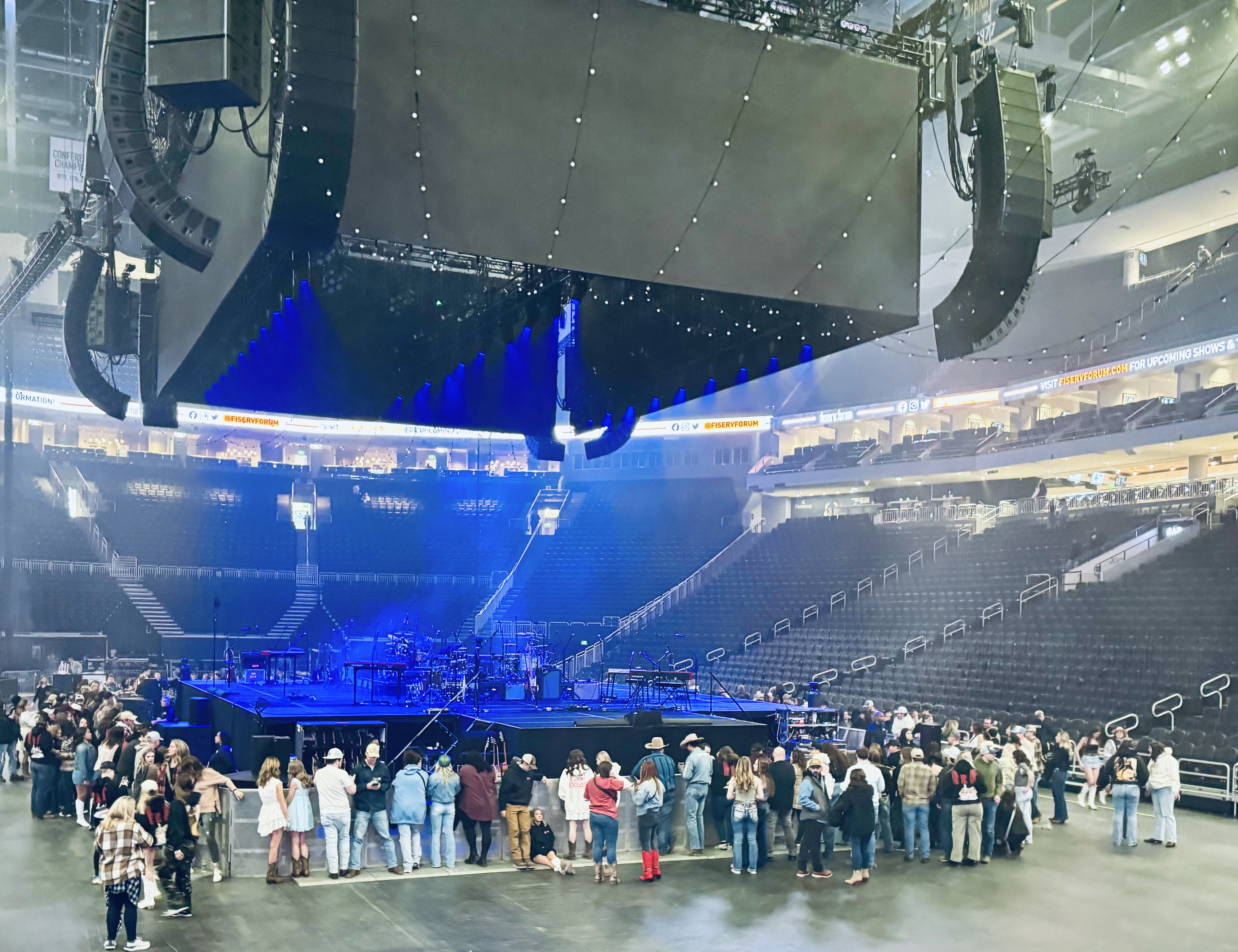 After loading up on another two rounds of bevvies for me and my pal, I pushed back to the club-level patio to see the band’s triumphant return, now sporting Milwaukee Bucks jerseys, Lucas complete with a cheesehead. Thus began the benediction with familiar repetitive guitar strums and strains as the boys settled back into their respective places on stage.